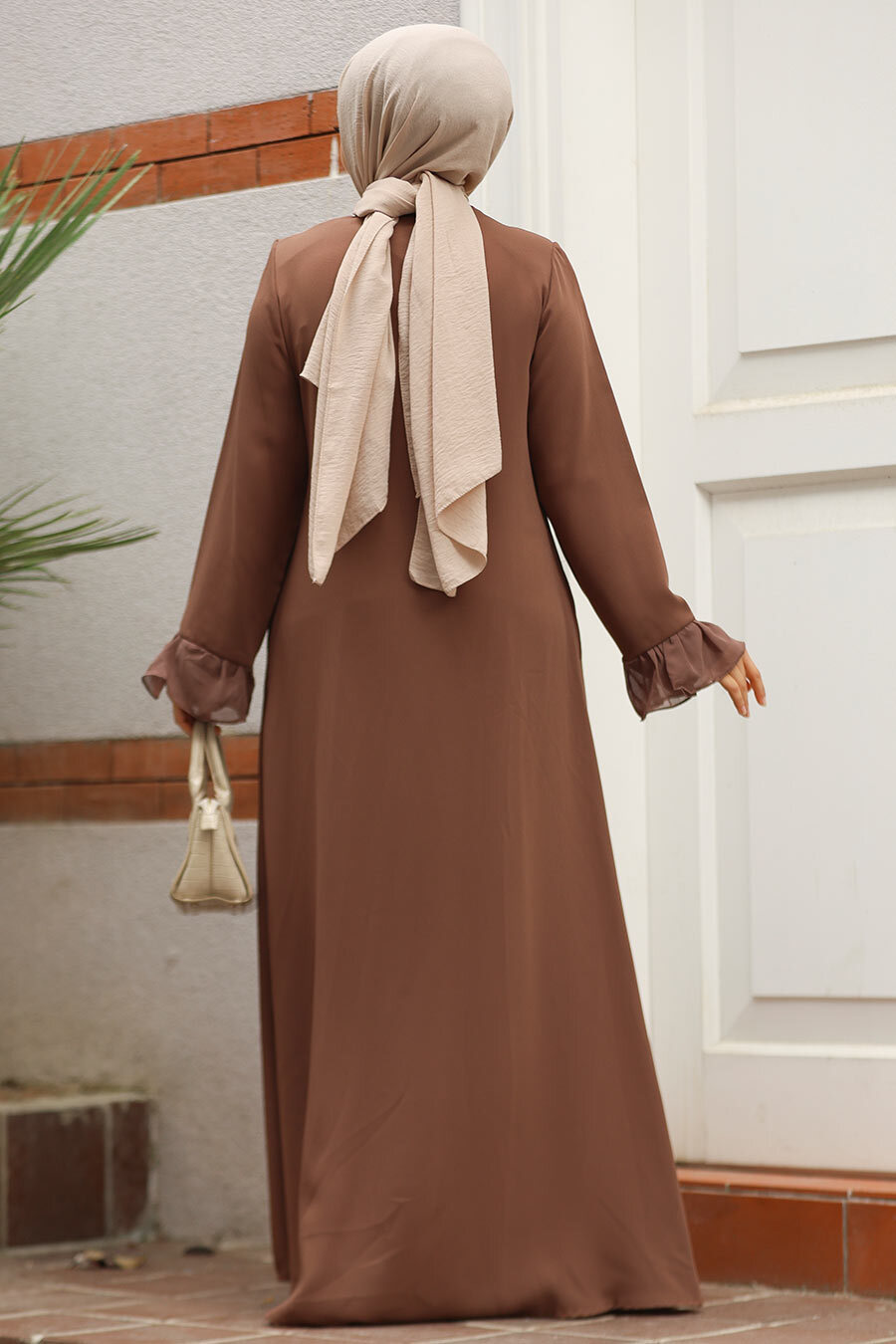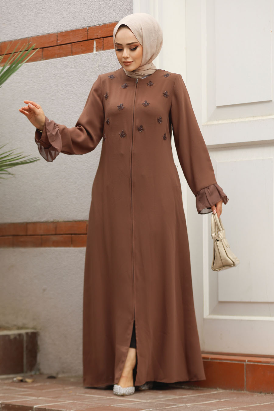 عباية حجاب بنية مطرزة بالخرز 520090kh