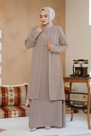 نيفا ستايل – فستان حجاب بيج مطوي 5854 بيج