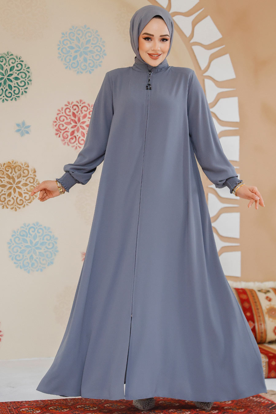 عباية حجاب رمادية بسحاب 45287 جرام