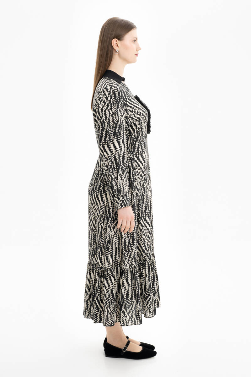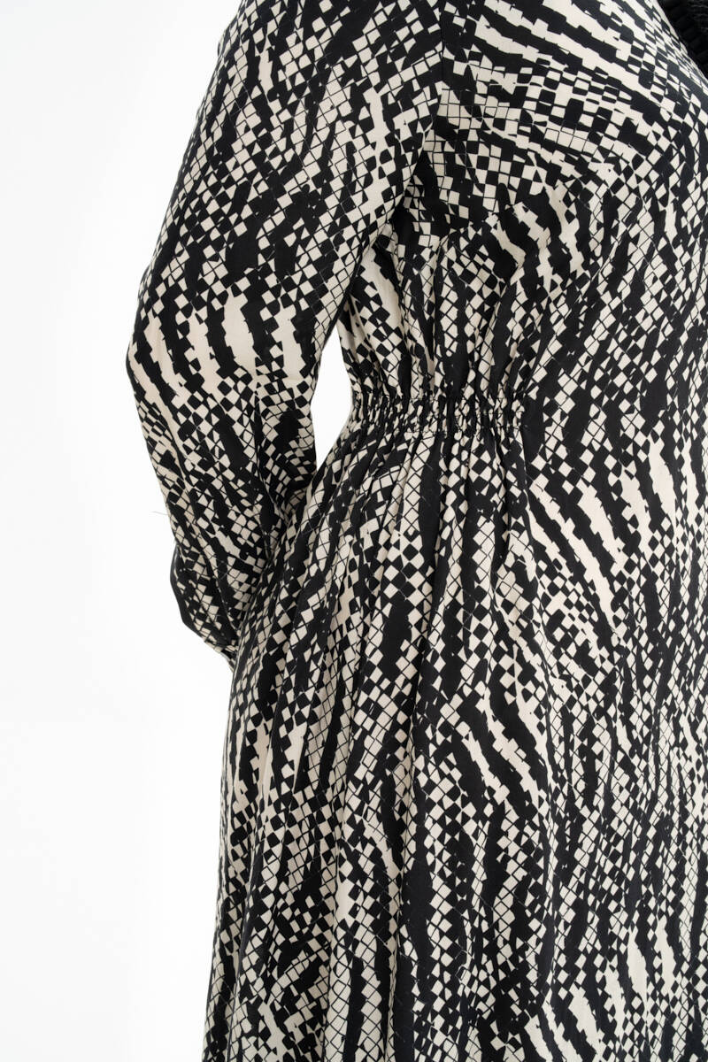 خليط القماش: النسيج الأساسي: 50% لايوسل، القماش الأساسي: 50% فيسكوز. الغسيل: لا تغسل المبيضات: لا تستخدم المبيضات، التجفيف: لا يمكن استخدام التجفيف بالمجفف، الكي: الكي على درجة حرارة 110 درجة مئوية كحد أقصى، التنظيف الجاف: يمكن إجراء التنظيف الجاف.