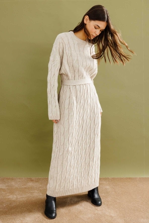 فستان تريكو مع جديلة شعر يتميز بشعر مضفر، ياقة مغلقة، أكتاف منسدلة، حزام تريكو متنقل، حاشية متماسكة مرنة، ملمس ناعم، فستان تريكو مريح. يُغسل مقلوبًا بنسبة 100% عند درجة حرارة 30 درجة في دورة قصيرة أو بالتنظيف الجاف.