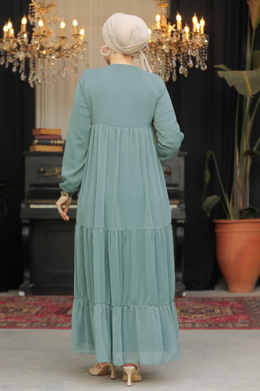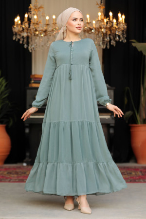 نيفا ستايل – فستان حجاب أخضر منقوش 10186y
