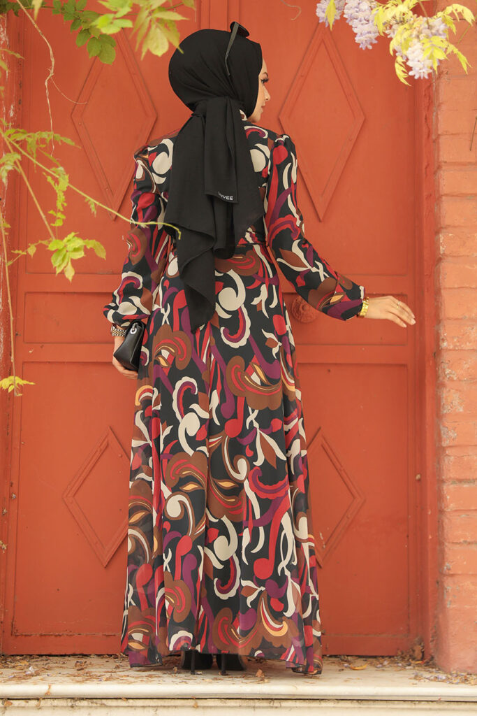نيفا ستايل – فستان حجاب أسود منقوش بالزهور 27936s
