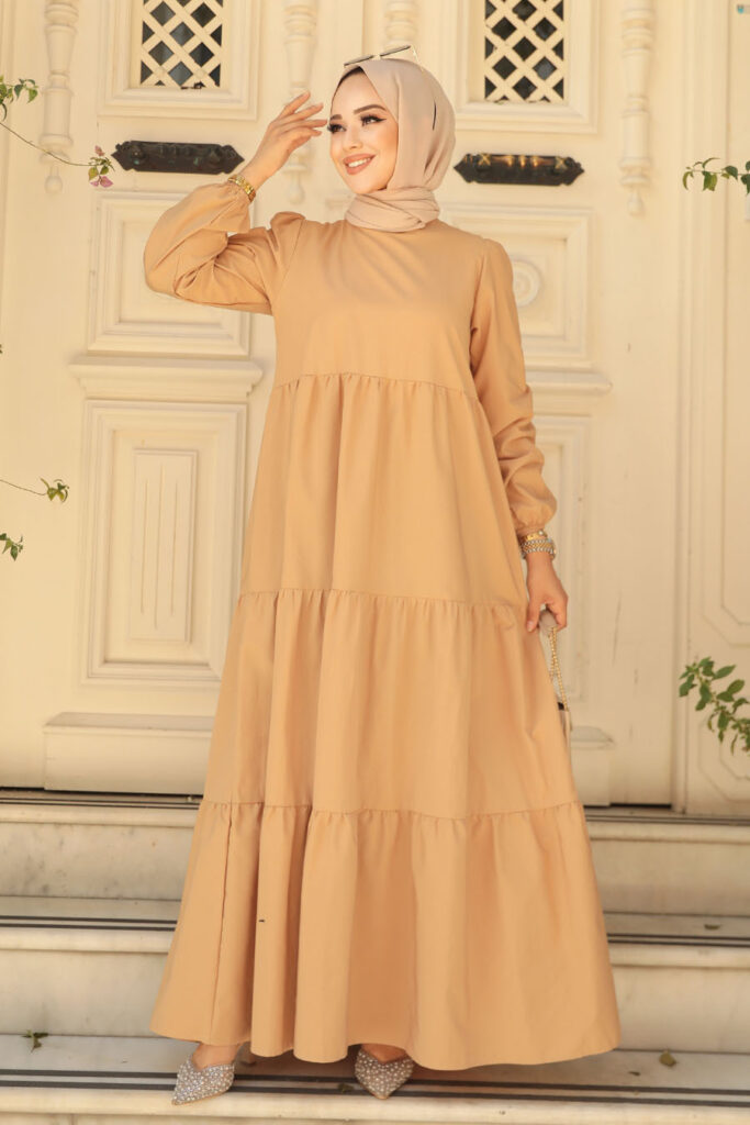 نيفا ستايل – فستان بوبلين حجاب بسكويت مطوي 57345bs