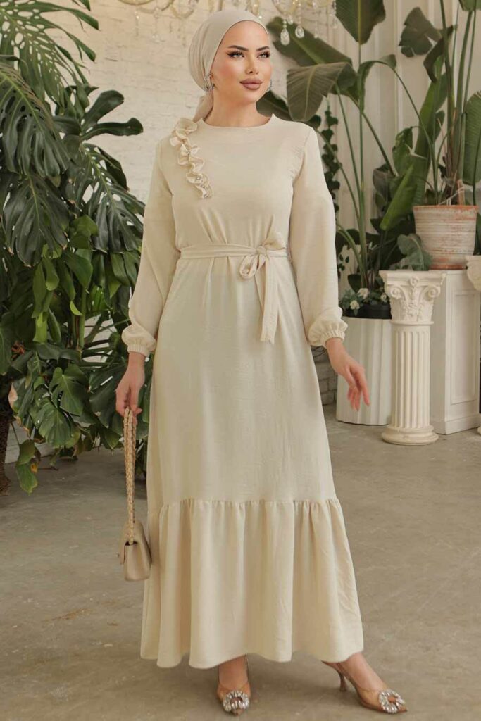 نيفا ستايل – فستان حجاب بيج بحزام 659 بيج