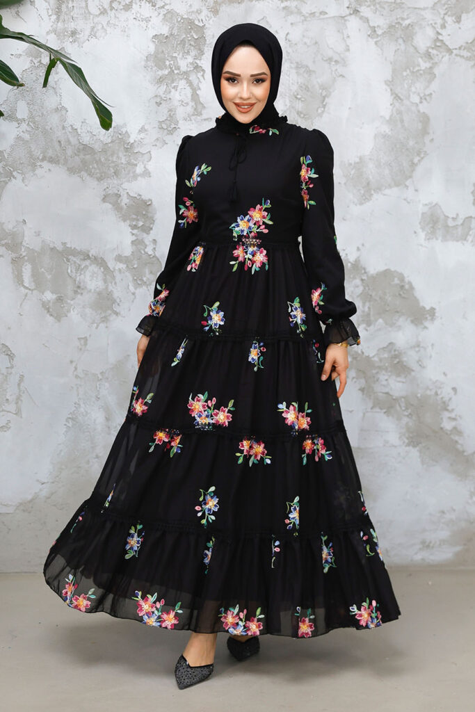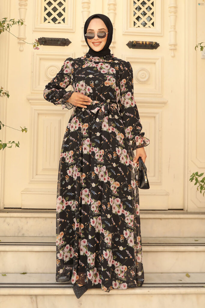 نيفا ستايل – فستان حجاب أسود منقوش بالزهور 29711s