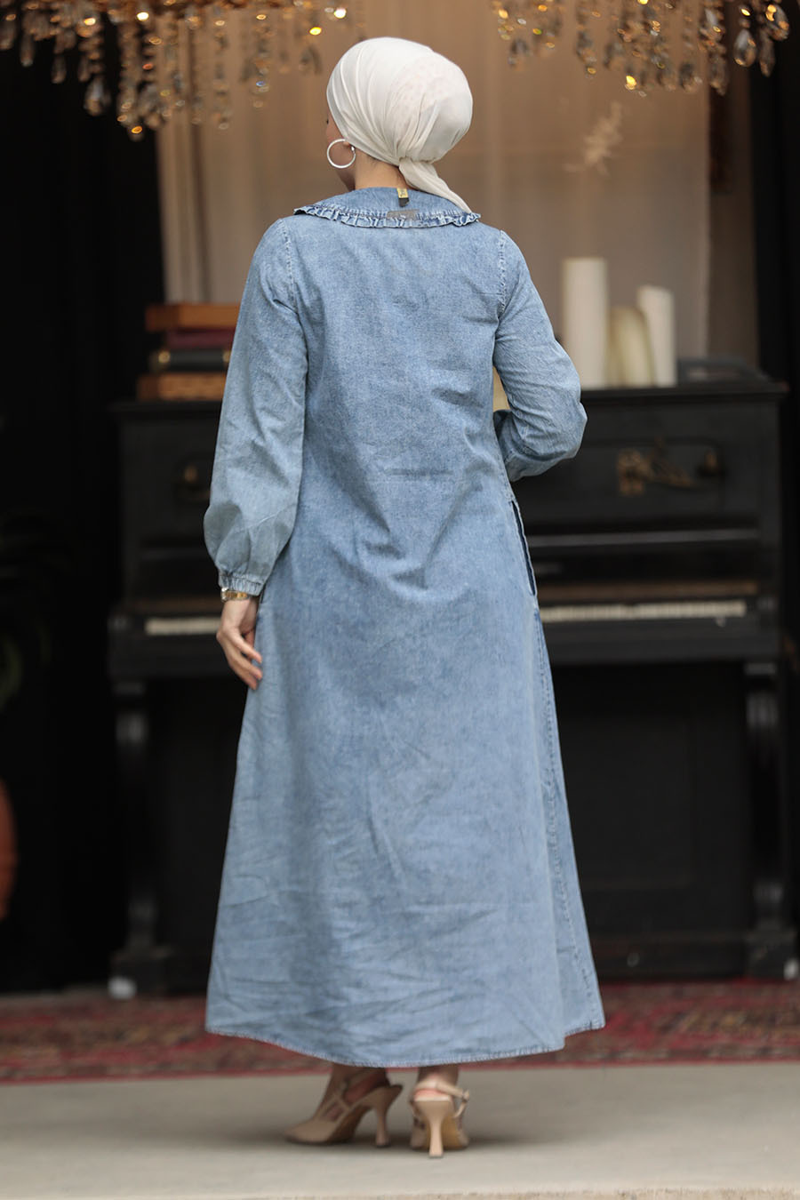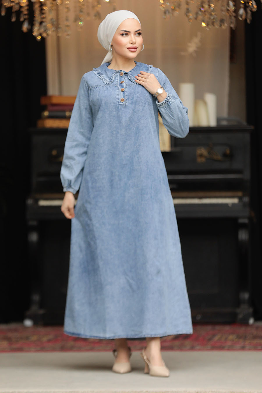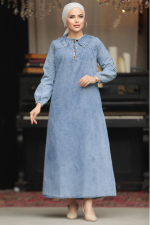 فستان دينم حجاب أزرق بتفاصيل جيب 19101m