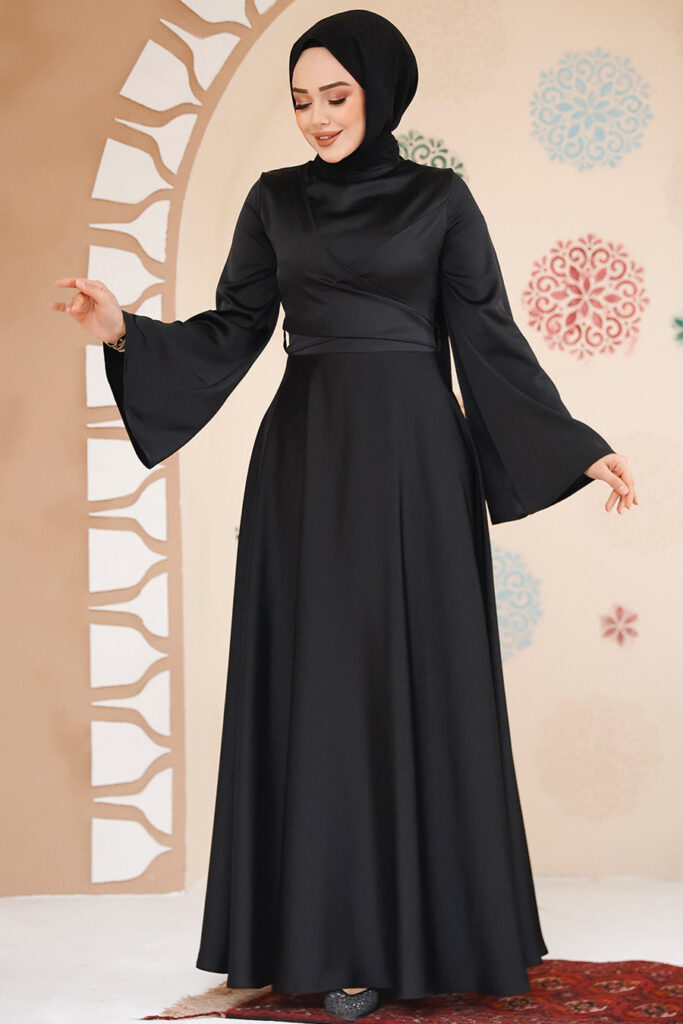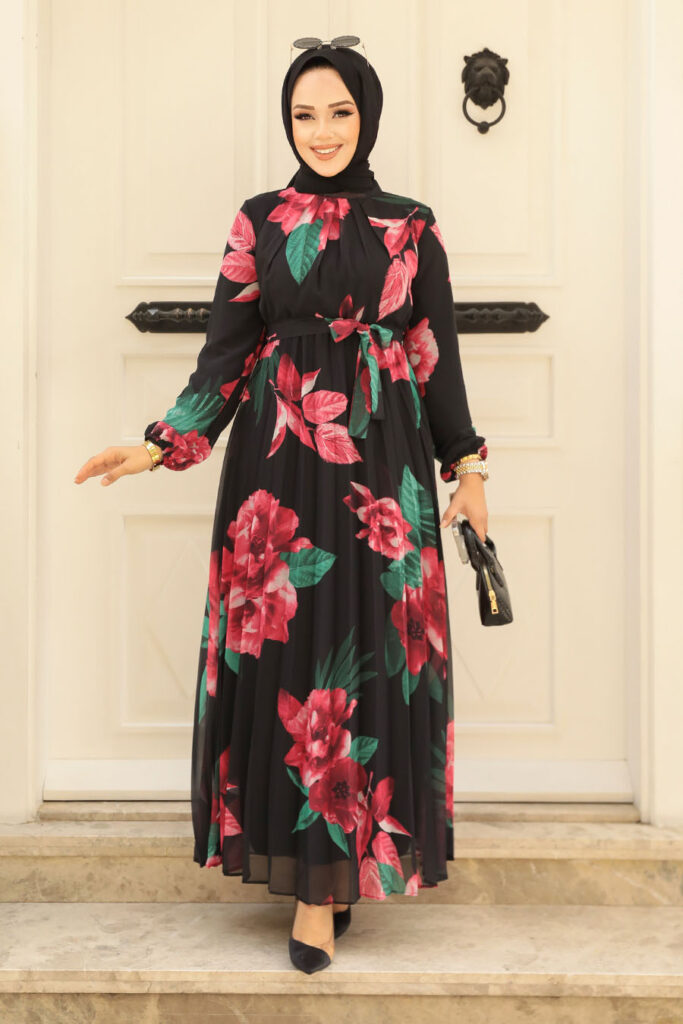 نيفا ستايل – فستان حجاب أسود مطوي 617s