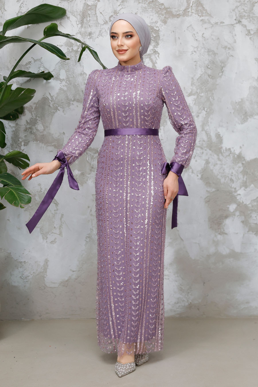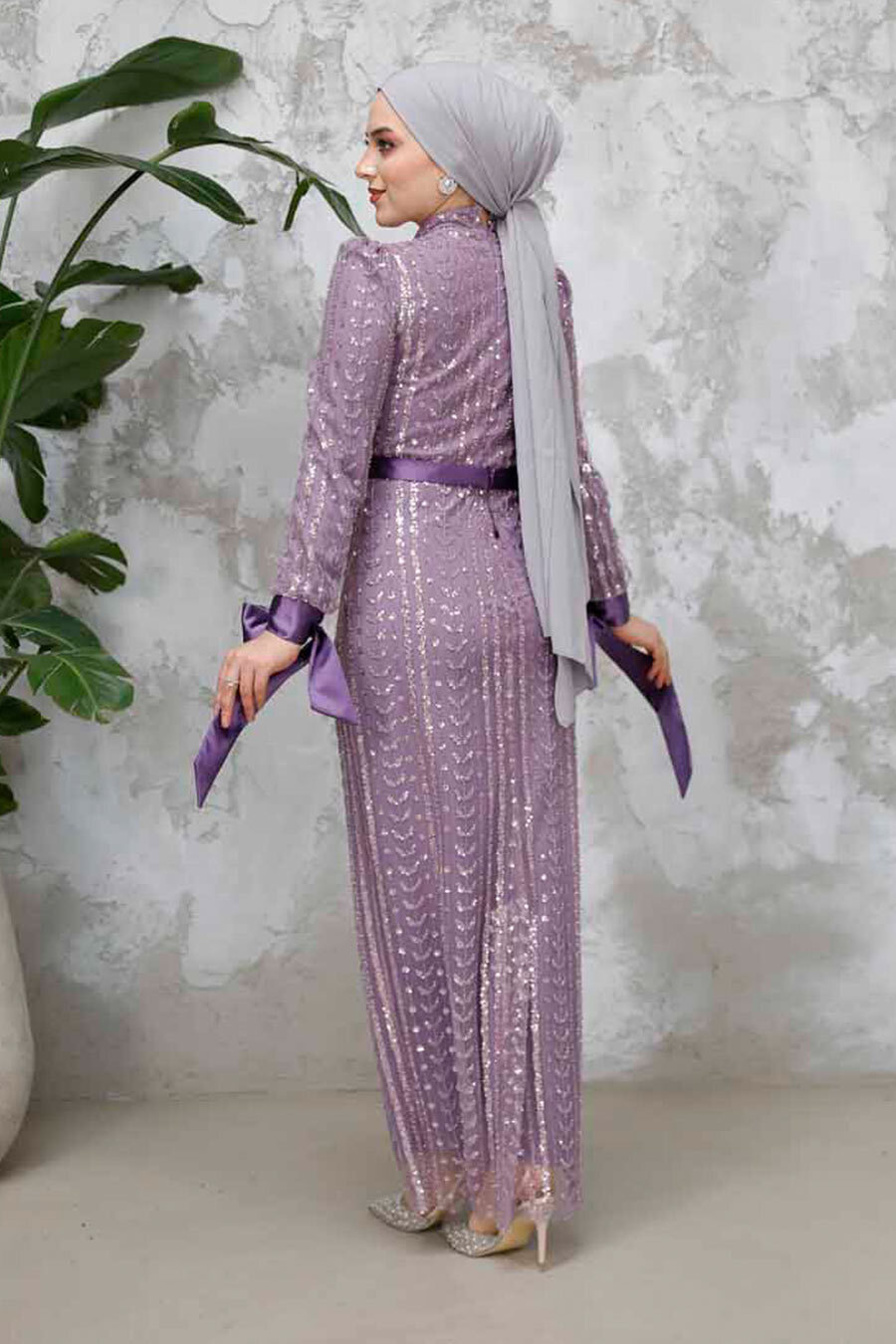 بما أن هذا المنتج عبارة عن فستان سهرة، فلا يتم قبول المرتجعات. تم التغيير. (يتم استبدال منتجات فساتين السهرة بمنتجات فساتين السهرة.) المنتج ذو مقاس قياسي ويوصى بطلب المقاس الذي تستخدمه عادةً. إنه فستان سهرة الحجاب الذي تبحثين عنه للمناسبات الخاصة وحفلات الزفاف والخطوبة والخطوبة والدعوات وحفلات التخرج. مميزات القماش: مصنوع من نسيج البوليستر بنسبة 100%. مميزات المنتج: ياقة واقفة، وأكمام طويلة، وربطة عنق، وحزام، وتطريز خرز، وبطانة في الخلف، طول المنتج: 150 سم. لون المنتج: أرجواني فاتح، قد يكون هناك اختلاف في لون المنتج بسبب التصوير. يباع فقط كفستان سهرة مقاس العينة: 38 الغسيل: تنظيف جاف فقط قياسات الموديل: الارتفاع: 170 سم الخصر: 72 سم الأرداف: 98 سم الصدر: 90 سم الوزن: 60.