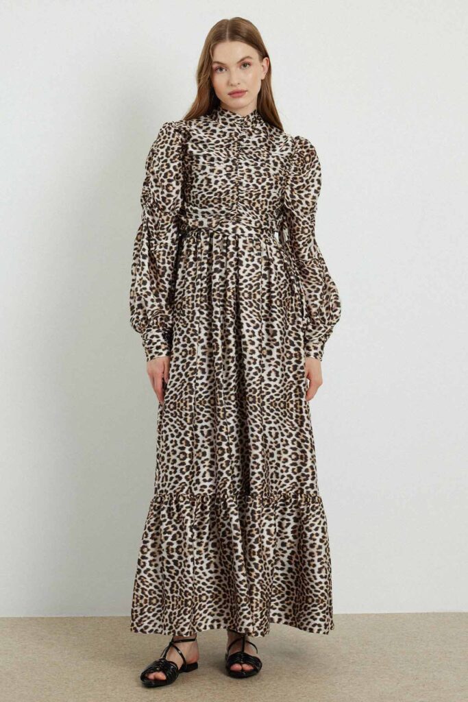 فستان أميليا من الساتان المطبوع بنقشة الفهد
