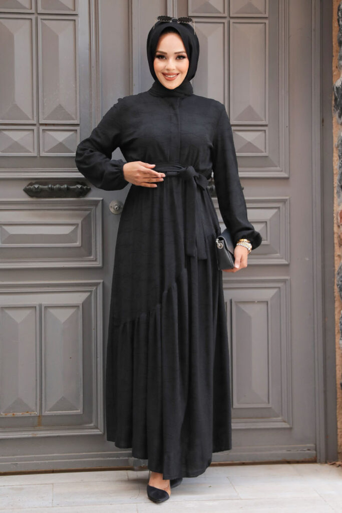 فستان سهرة حجاب – فستان سهرة حجاب بني مع حزام بإبزيم 664kh