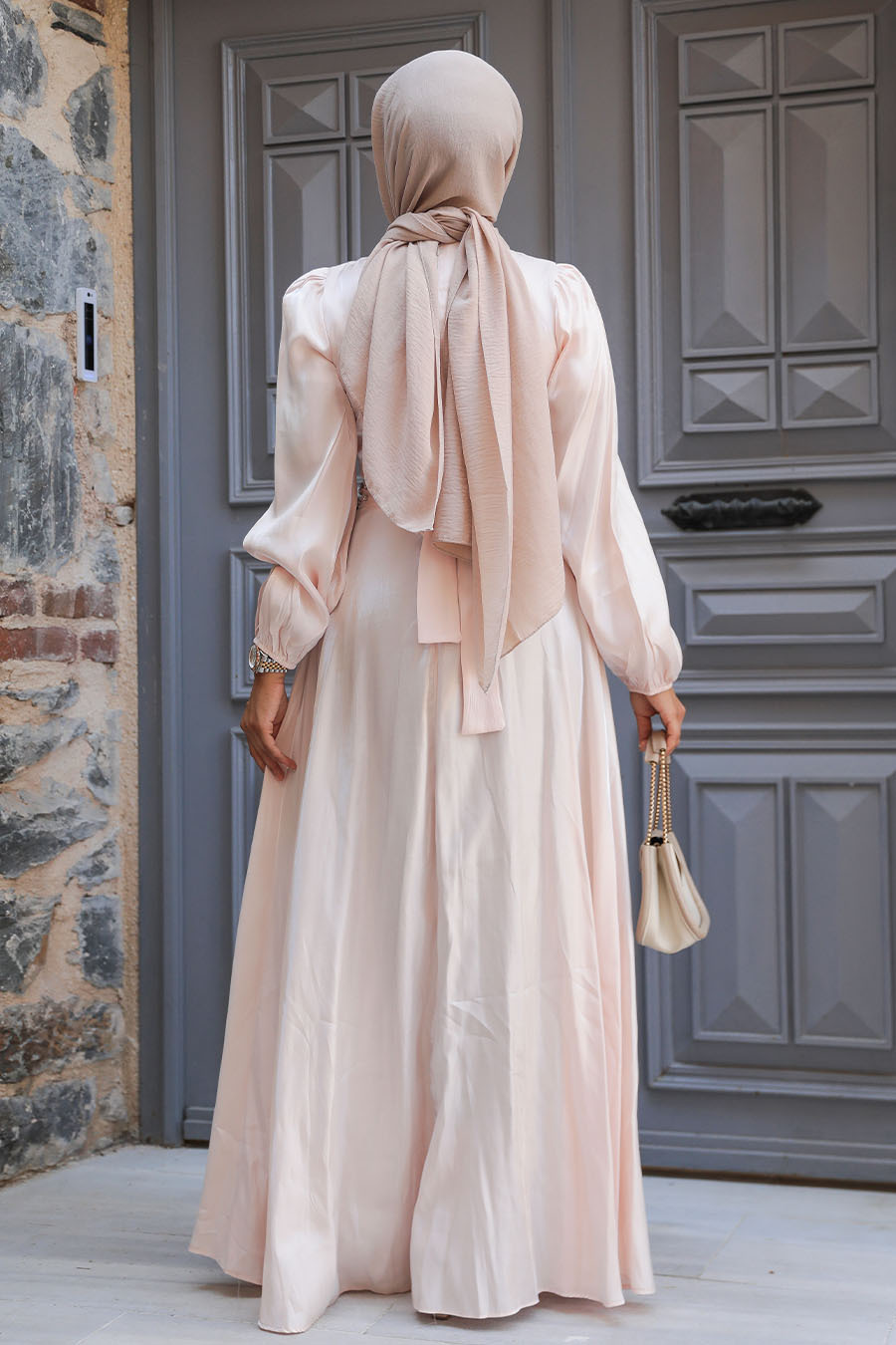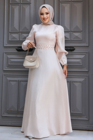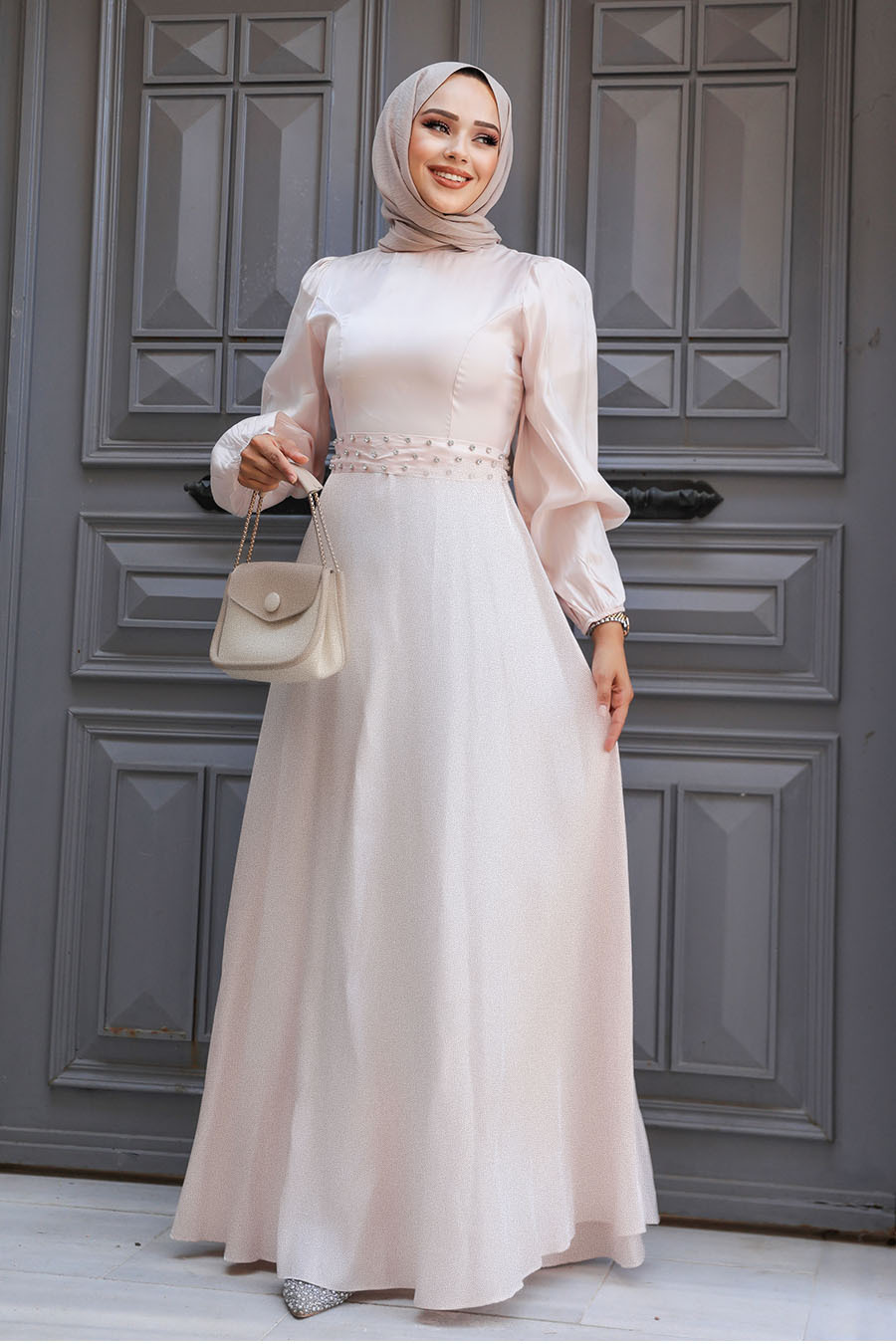 فستان سهرة حجاب – فستان سهرة حجاب مسحوق مع تفاصيل خرز 23301pd