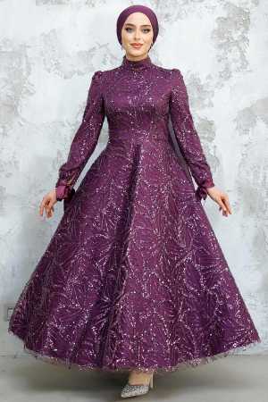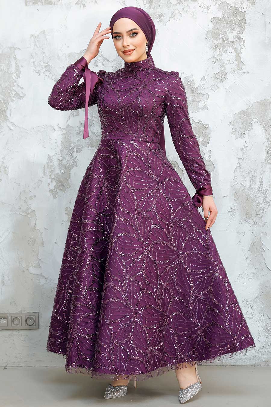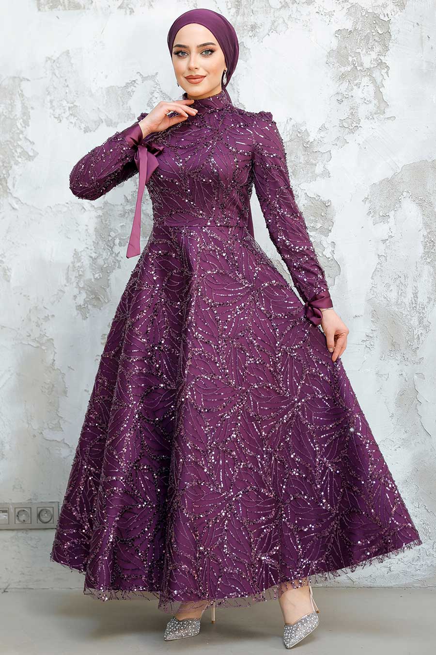 فستان سهرة حجاب – فستان سهرة حجاب مطرز بالترتر 4908mu