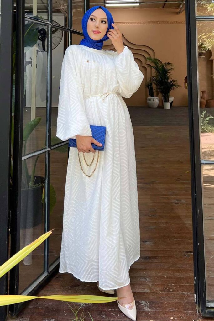 فستان سهرة حجاب – كم بالون فستان سهرة حجاب أزرق داكن 60681l