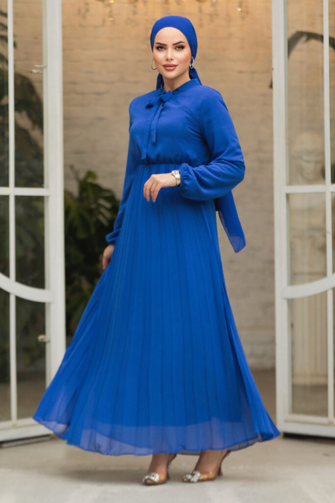 فستان سهرة حجاب – كم بالون فستان سهرة حجاب أزرق داكن 60681l