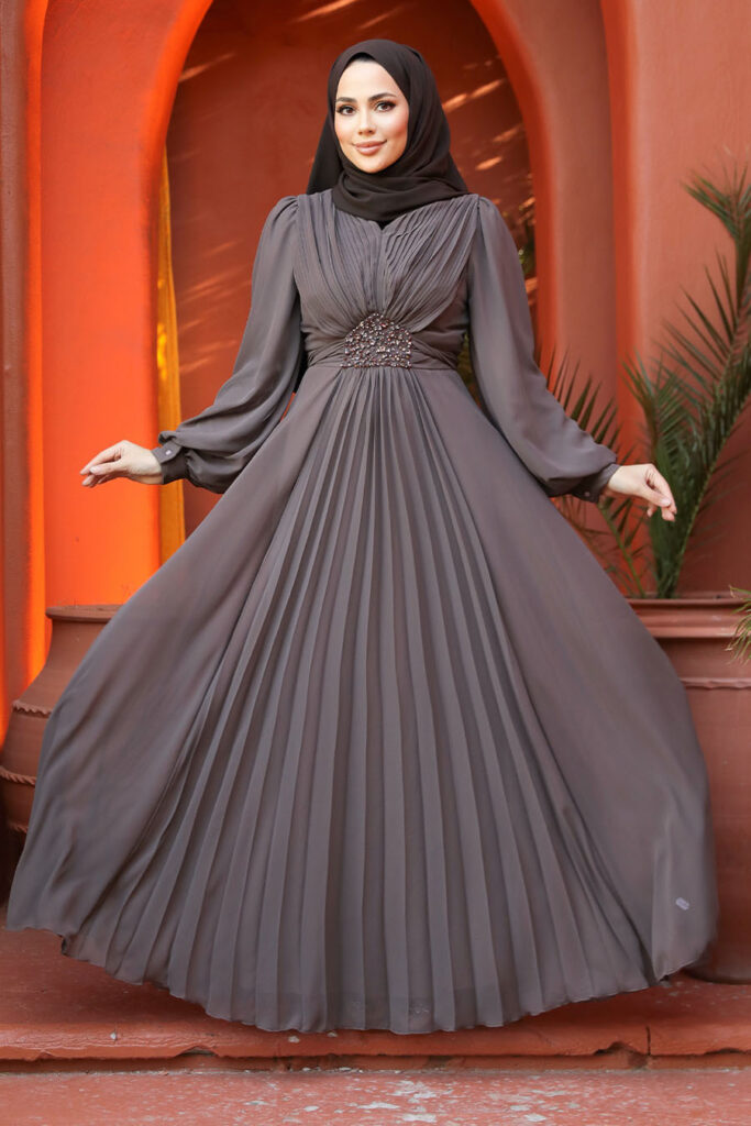 فستان سهرة حجاب – كم بالون فستان سهرة حجاب أزرق داكن 60681l