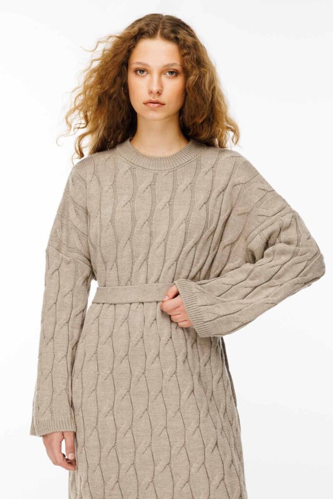 فستان منسوج من فرو المنك مع شكل جديلة شعر