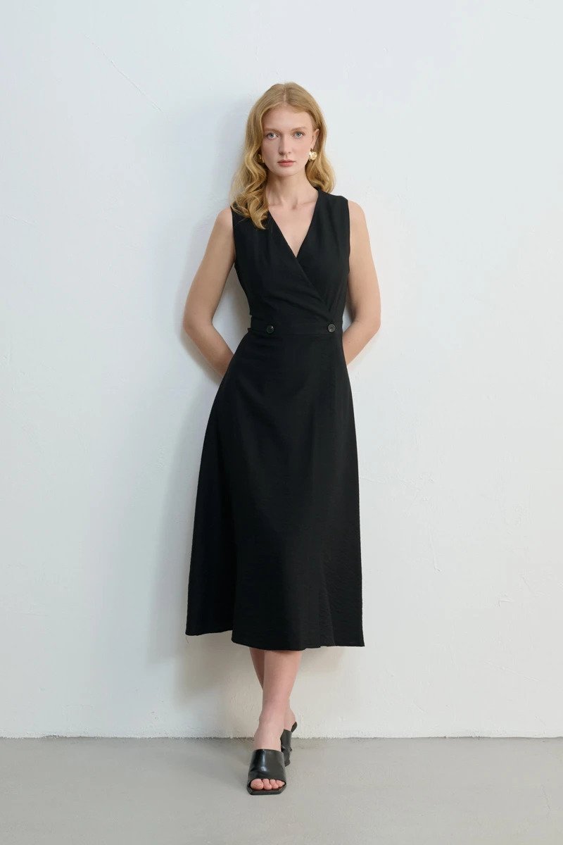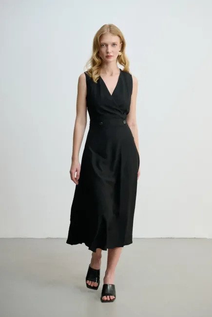 قطعة خالدة تجمع بين الأناقة والراحة. بفضل قصته المزدوجة الصدر، فهو يناسب خطوط جسمك تمامًا ويمنحك مظهرًا أكثر أناقة. بفضل تصميمه بدون أكمام وطوله الطويل، فهو خيار مثالي للمناسبات اليومية والخاصة. إنه يوفر استخدامًا خفيفًا وبردًا بهيكله غير المبطن. الأبعاد: الارتفاع: 1.75 سم الصدر: 85 الخصر: 59 الأرداف: 90 المقاس: 36/XS