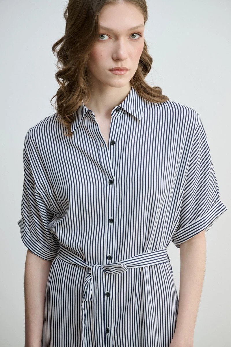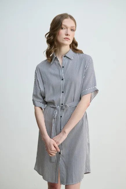 بفضل تصميمه الأنيق والعصري، يوفر الفستان المخطط باللون الأزرق الداكن الأناقة والراحة معًا. قطعة مناسبة لجميع المواسم ستكمل أسلوبك في الاستخدام اليومي وفي اللحظات الخاصة الموسم: ربيع 2025 – معلومات محتوى الصيف: 100% فيسكوز نوع المنتج: فستان طول المنتج: 97 سم النمط: نمط مخطط: أنماطنا كبيرة، ننصحك بشراء مقاس أصغر بدرجة واحدة الأبعاد: الارتفاع: 1.74 سم الصدر: 85 الخصر: 61 الأرداف: 90 المقاس: 36/XS