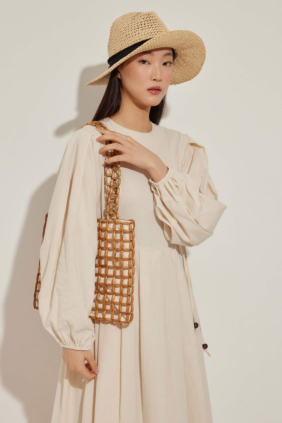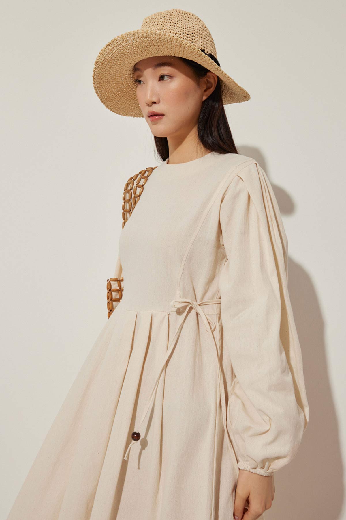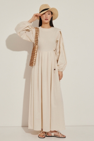 فستان من الكتان الطبيعي مع ربطة جانبية