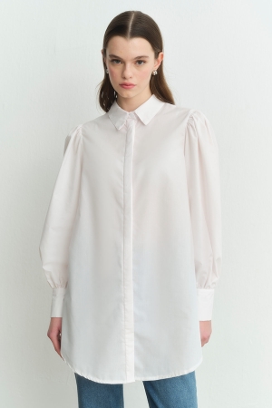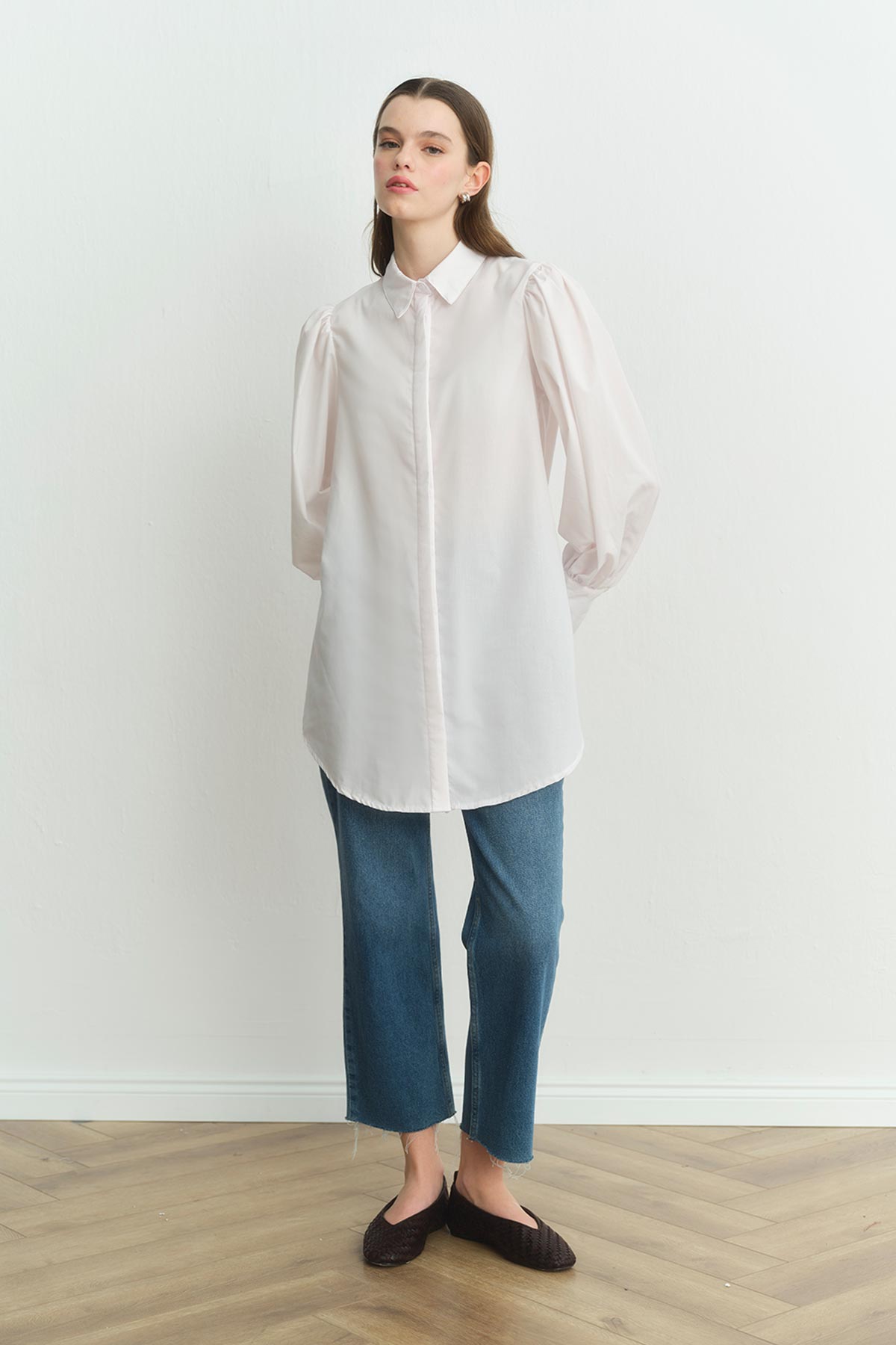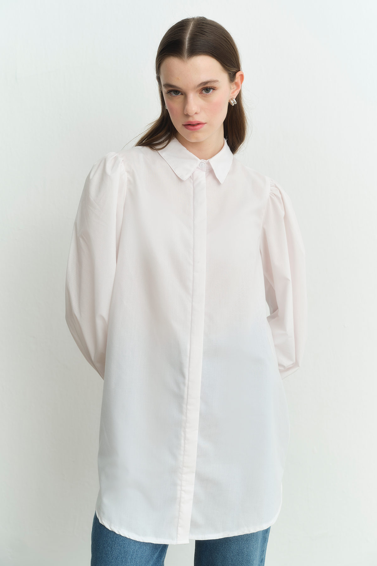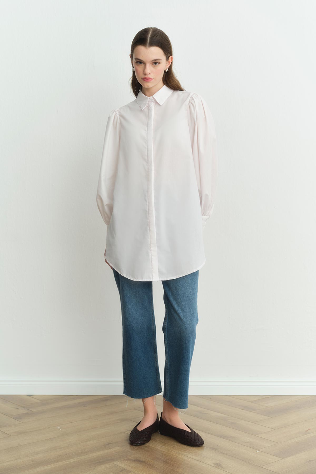 يتميز القميص الأساسي بأكمام بالونية بياقة القميص، على شكل كم بالون مزيف، تفاصيل فتحة مخفية، قميص ملائم ومريح 70% سرير 30% بيس