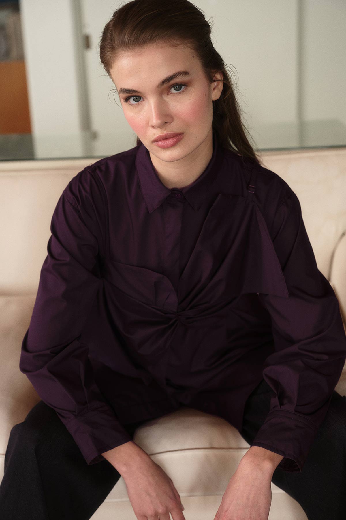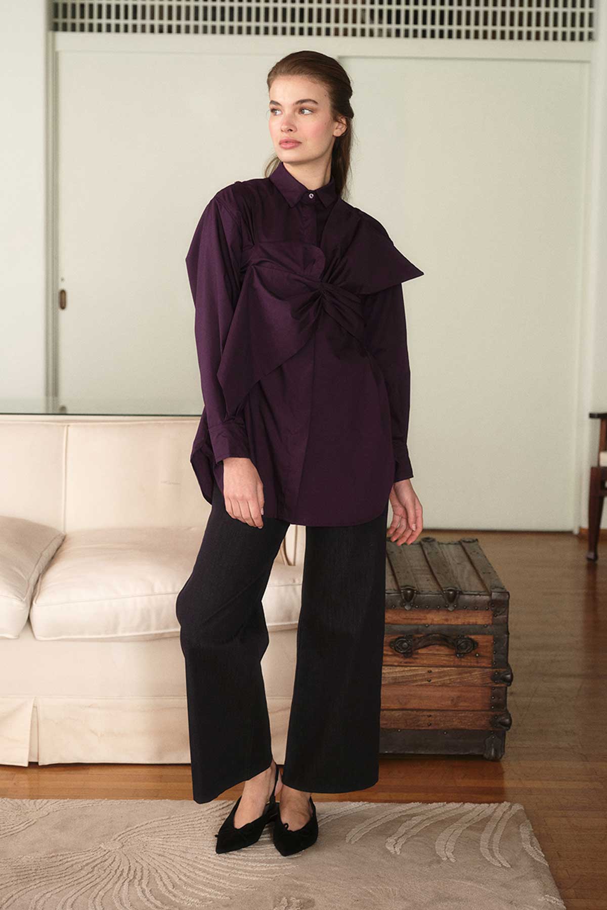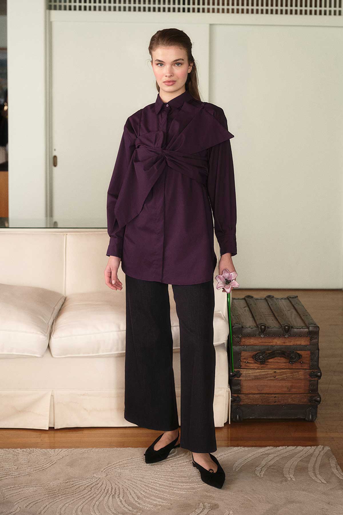 مميزات قميص DAMSON ذو تفاصيل القوس: ياقة قميص، زر مخفي، تفاصيل إكسسوار على شكل فيونكة، صدرية مشحونة بأجزاء إضافية، سحاب خلفي، قميص كامل المقاس. محتوى القماش وتعليمات الغسيل: 100% قطن، غسيل لطيف عند درجة حرارة 30 درجة كحد أقصى. يُغسل بالبرامج الاصطناعية والحساسة. مقاس المنتج الموديل: S قياسات الموديل: الارتفاع: 1.71 سم، الصدر: 78 سم، الخصر: 57 سم، الأرداف: 87 سم