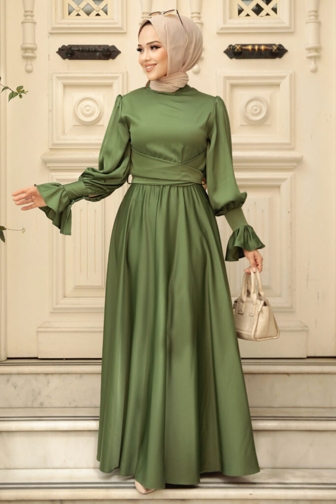 فستان سهرة حجاب – فستان سهرة كاكي حجاب ستان 5983hk