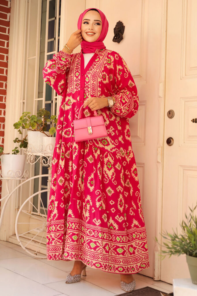 نيفا ستايل – فستان حجاب أخضر منقوش 50092y