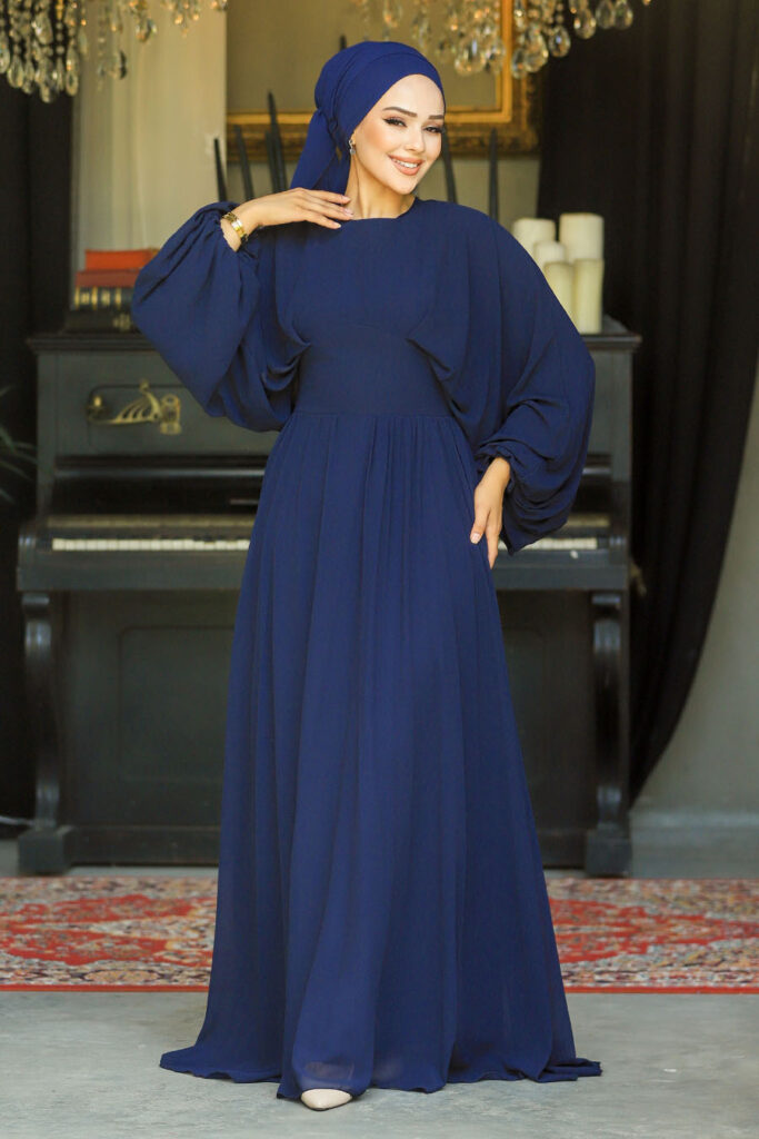 فستان سهرة حجاب – كم بالون فستان سهرة حجاب أزرق داكن 60681l
