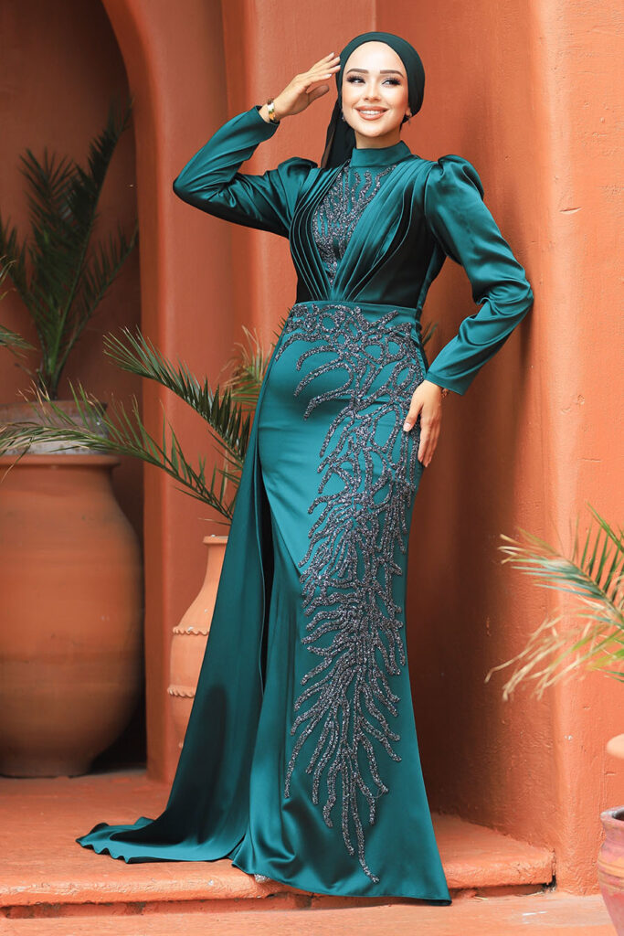 فستان سهرة حجاب – فستان سهرة حجاب ذهبي 60801gold