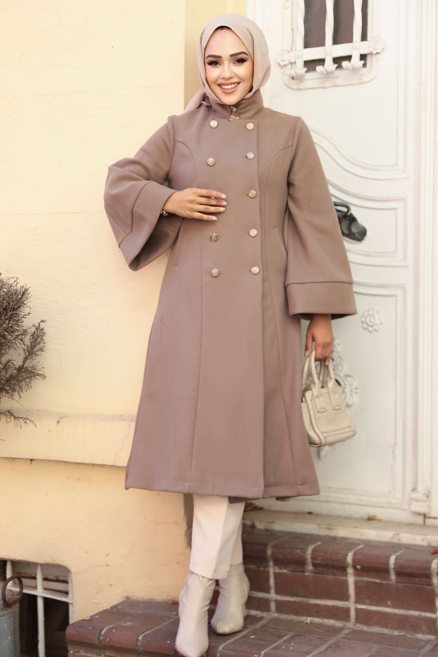 فستان سهرة حجاب – فستان سهرة حجاب ستان بسكويت 4171bs