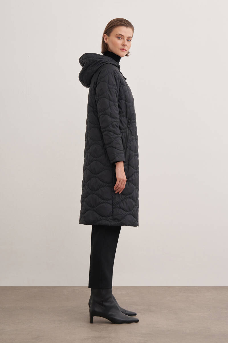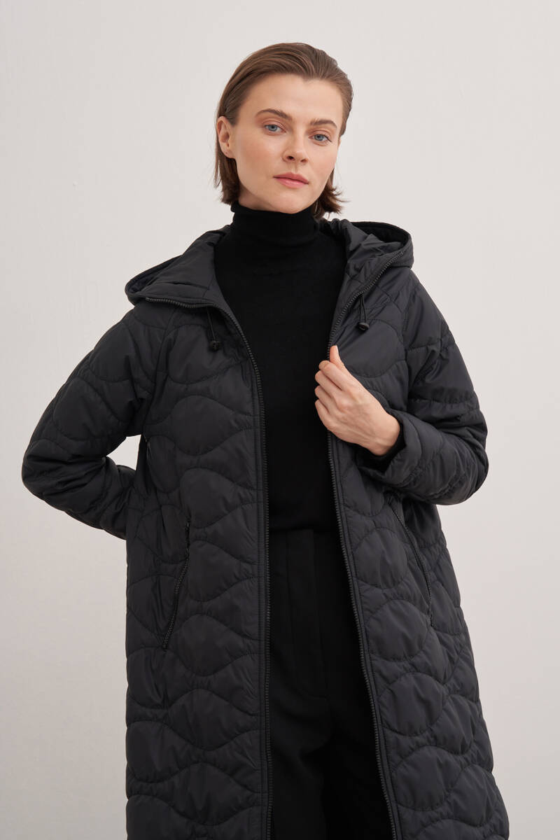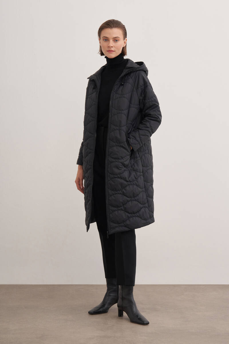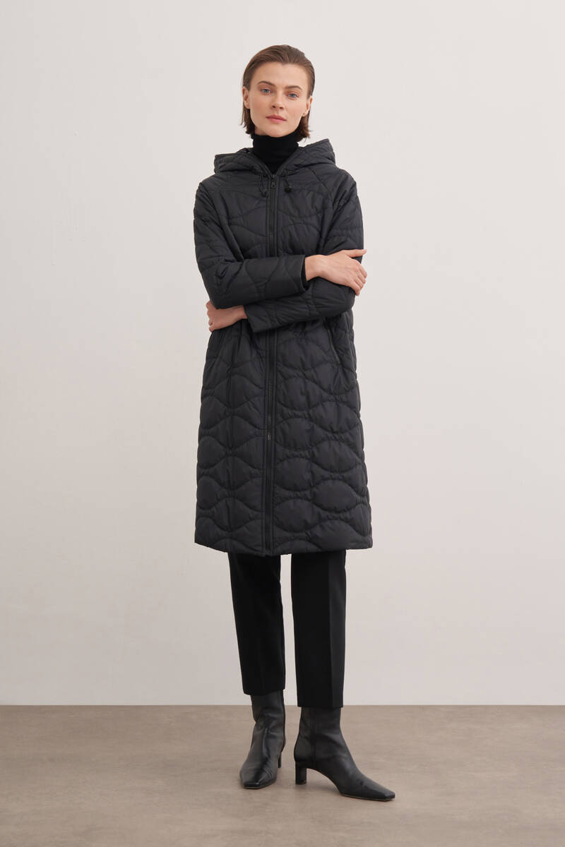 معطف طويل منتفخ بغطاء للرأس 5970111 أسود