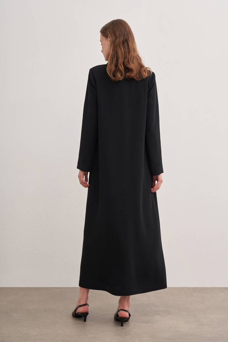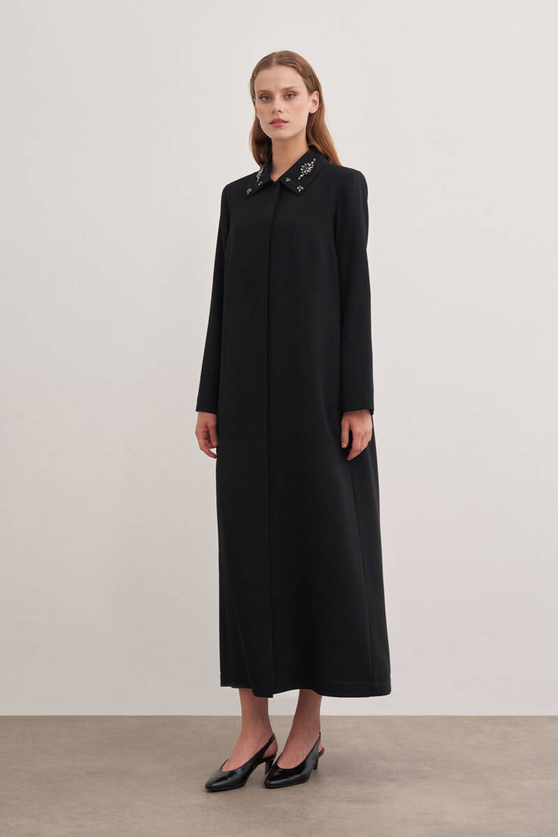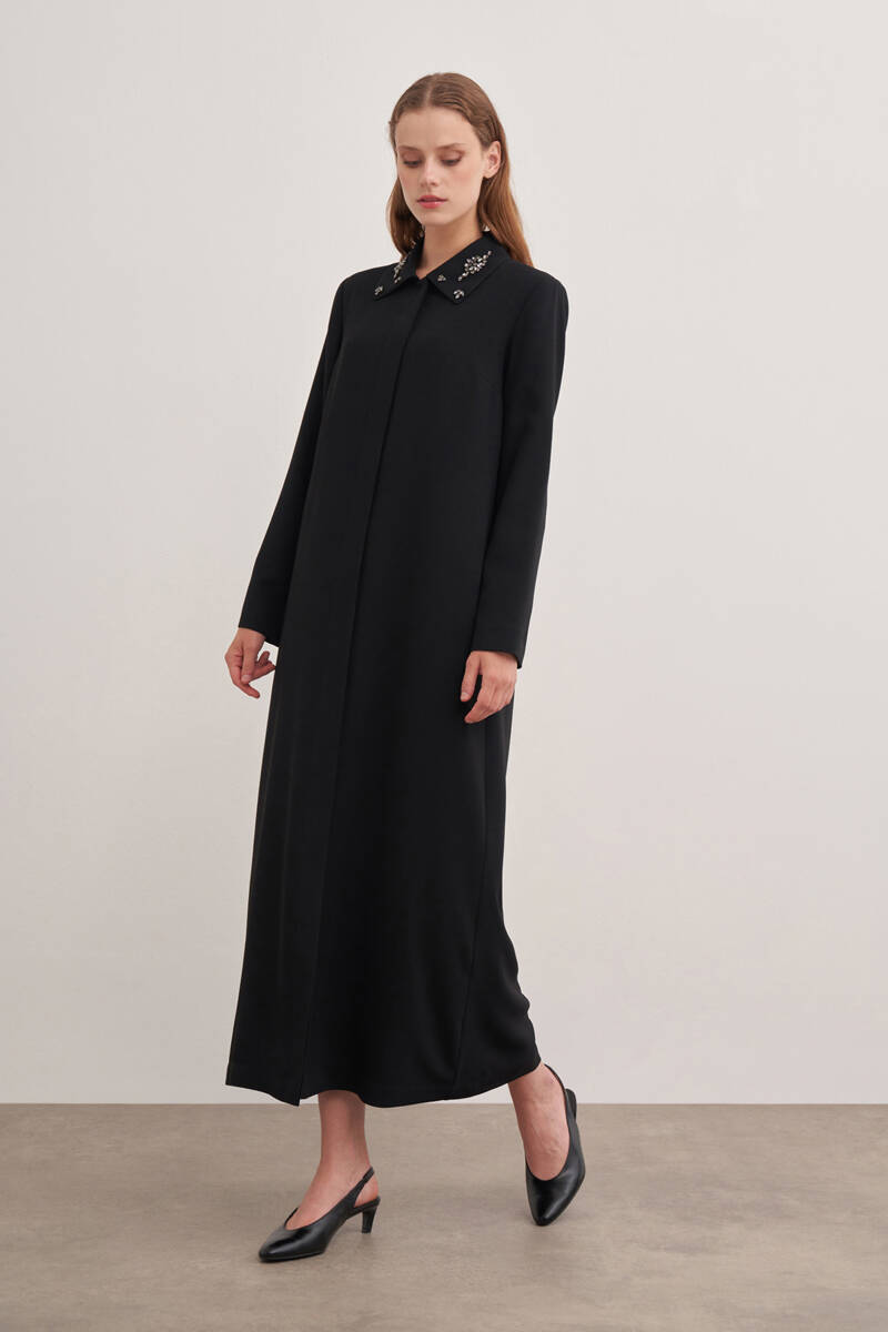 فستان سهرة حجاب – فستان سهرة حجاب كريب أسود مع تفاصيل خرز 30022s