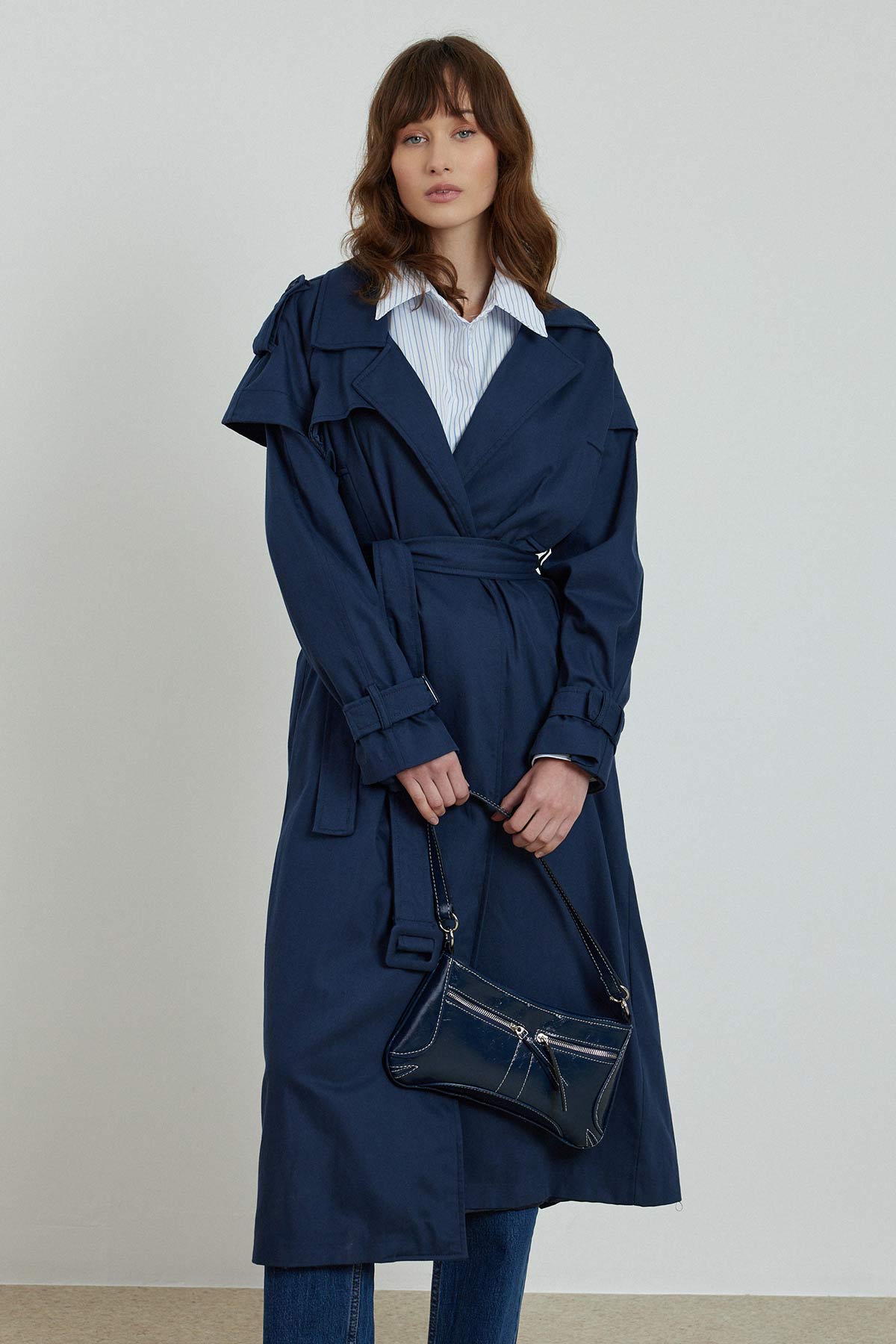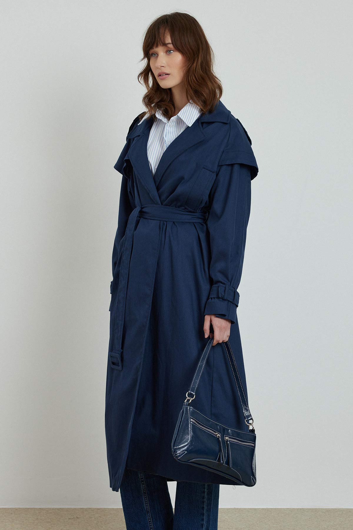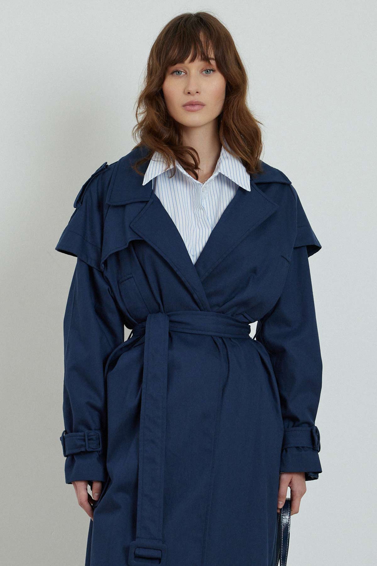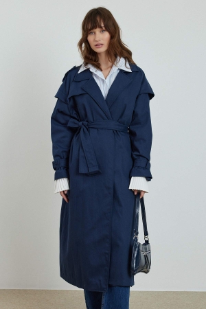 مميزات معطف المطر من جبردين بتفاصيل مفصلة، معطف واقٍ من المطر كبير الحجم مع حلقات حزام على الخصر والذراعين، حزام متحرك، تفاصيل جيب في الأعلى، جيوب مخفية على الجانب، فتحة في الخلف، مبطن 100% قطن، تنظيف جاف فقط.