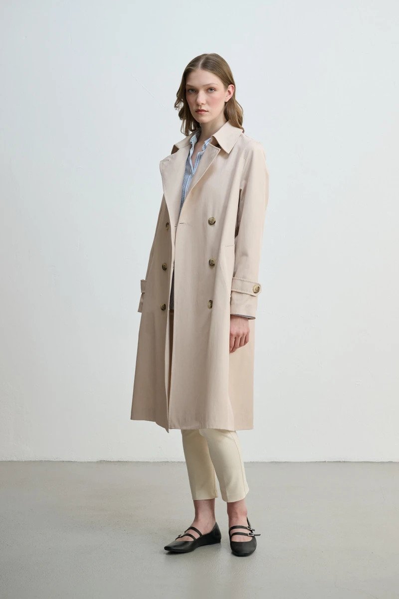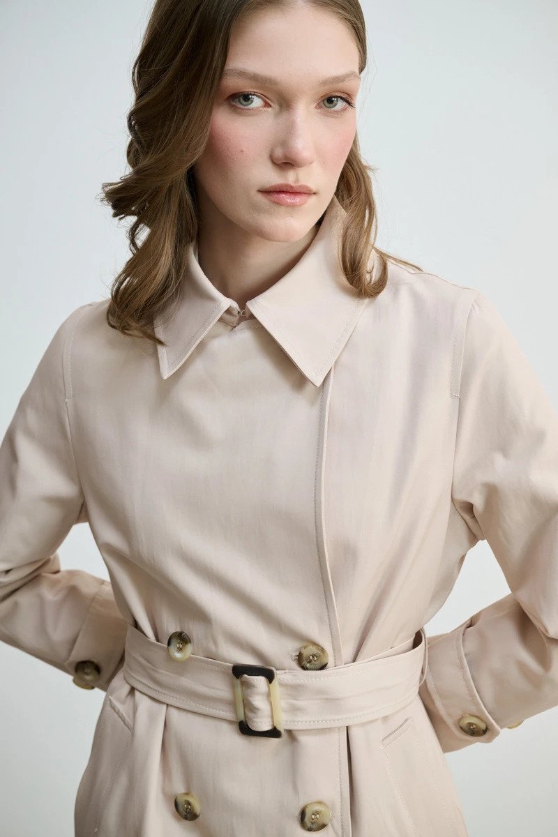 يوفر معطف الترنش الكلاسيكي باللون البيج أناقة خالدة، وسيكون جزءًا لا غنى عنه من خزانة ملابسك بتصميمه المناسب لجميع المواسم. بفضل تصميمه الأنيق وملمسه عالي الجودة، فهو مكمل مثالي لمجموعاتك اليومية والخاصة. احصل على الأناقة مع هذا المعطف الذي يتكيف مع كل نمط! الموسم: ربيع 2025 – معلومات محتوى الصيف: 74% قطن، 26% بوليستر نوع المنتج: معطف واقٍ من المطر طول المنتج: 104 سم النمط: مقاس عادي: أنماطنا كبيرة، ننصحك بشراء مقاس أصغر بدرجة واحدة. أبعاد عارضة الأزياء XS/36: الارتفاع: 1.74 سم الصدر: 85 الخصر: 61 الأرداف: 90 المقاس: 36/XS