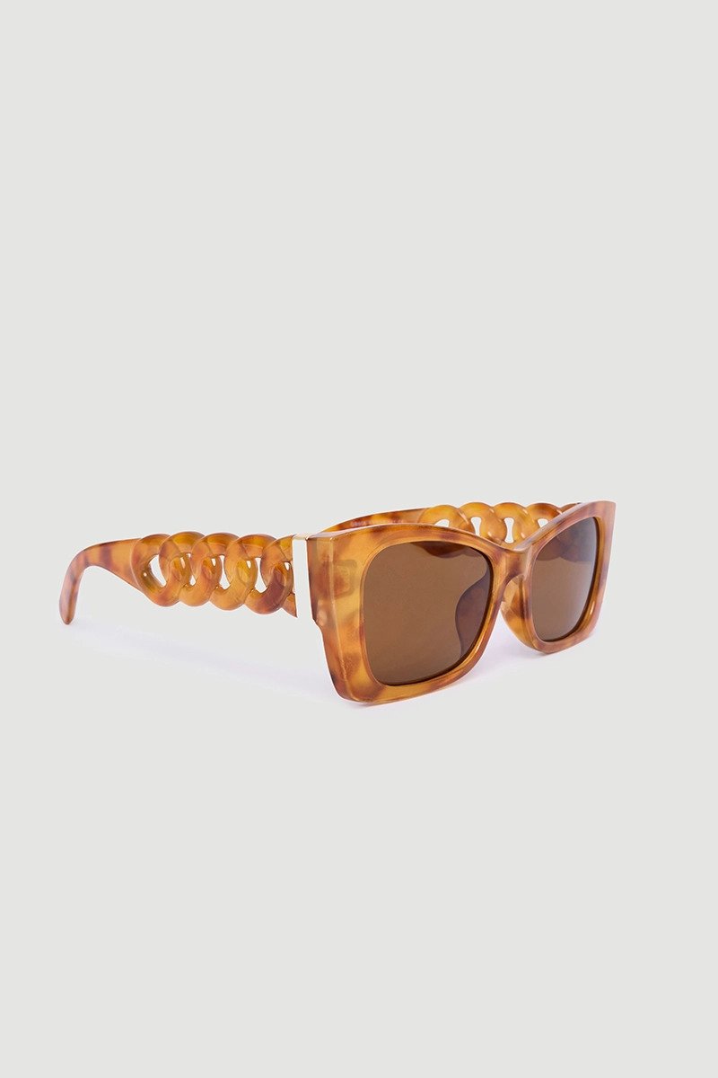 نظارة شمسية ذات حافة عظمية ذات نمط بسيط – أسمر ضارب للصفرة