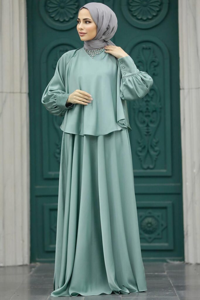 نيفا ستايل – تونيك حجاب فيسكوز أخضر منقوش 11627y