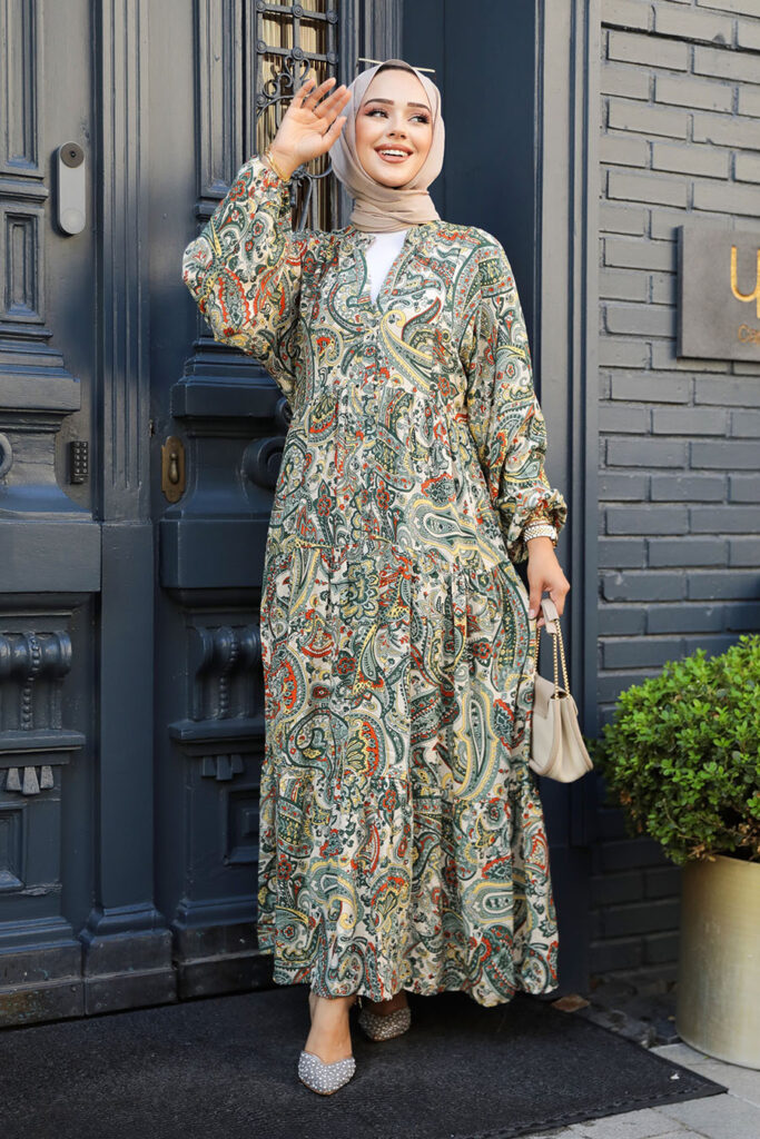 نيفا ستايل – تونيك حجاب فيسكوز أخضر منقوش 11627y