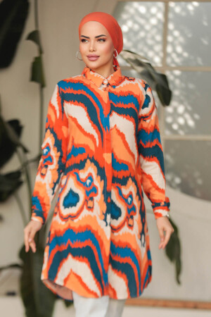 مميزات القماش: مصنوع من نسيج قطني 100%. مميزات المنتج: ياقة كلاسيكية، وأكمام طويلة، وأساور أكمام، منقوشة وأزرار في المنتصف من الأمام. طول المنتج: 100 سم. لون المنتج: برتقالي – قد يكون هناك اختلاف في لون المنتج بسبب أسلوب التصوير محتوى الطلب: هذا المنتج ليس مزيجًا. يباع فقط على شكل تونيك مقاس العينة: 38 الغسيل: يمكن غسله على درجة حرارة 30 درجة دون عصر. قياسات الموديل الارتفاع: 165 سم الخصر: 63 سم الأرداف: 90 سم الصدر: 80 سم الوزن: 56.