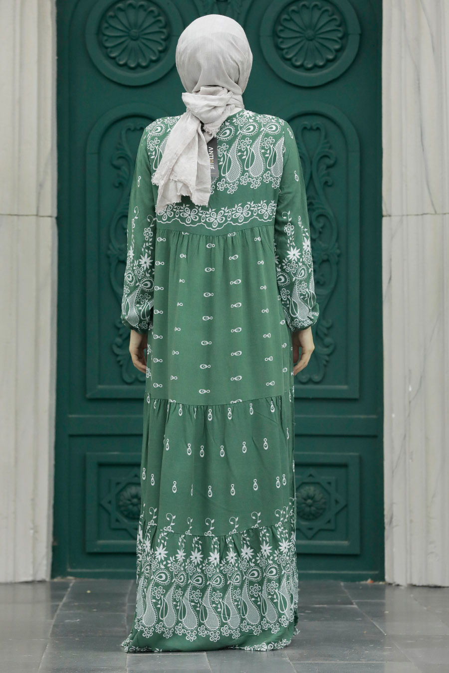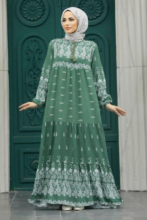 فستان سهرة حجاب – فستان سهرة حجاب أخضر مطرز 52053cy