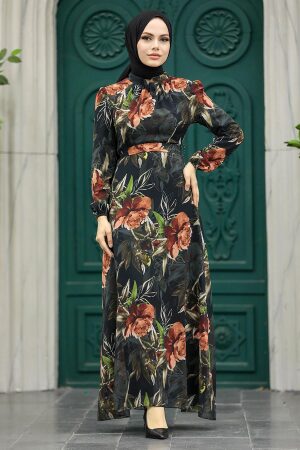 نيفا ستايل – فستان حجاب أسود منقوش بالزهور 27932s