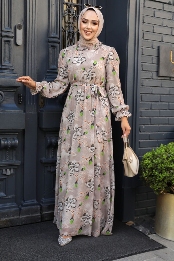 نيفا ستايل – فستان حجاب أسود منقوش 89741s