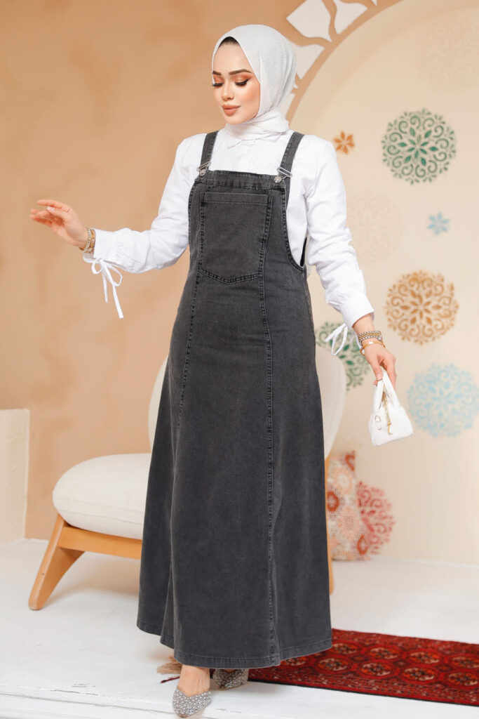 نيفا ستايل – فستان حجاب أسود منقوش 89741s