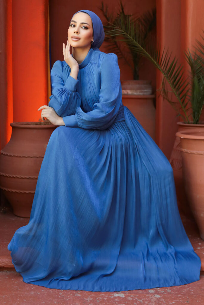 فستان سهرة للحجاب – فستان سهرة للحجاب باللون الوردي المغبر مع تفاصيل الخرز 22153gk