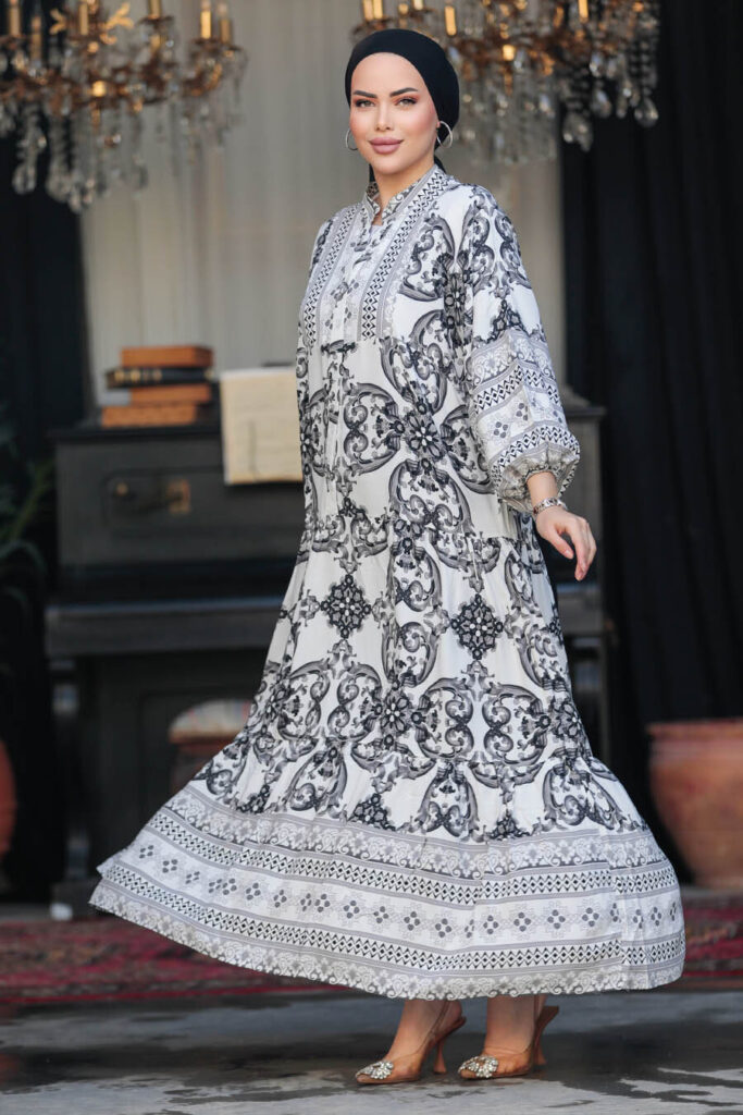نيفا ستايل – فستان حجاب أسود منقوش 18231s