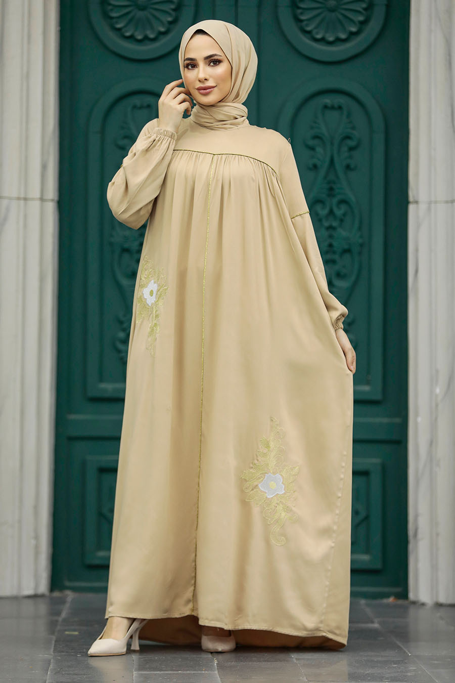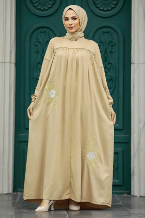 نيفا ستايل – فستان حجاب بيج منقوش 8999 بيج