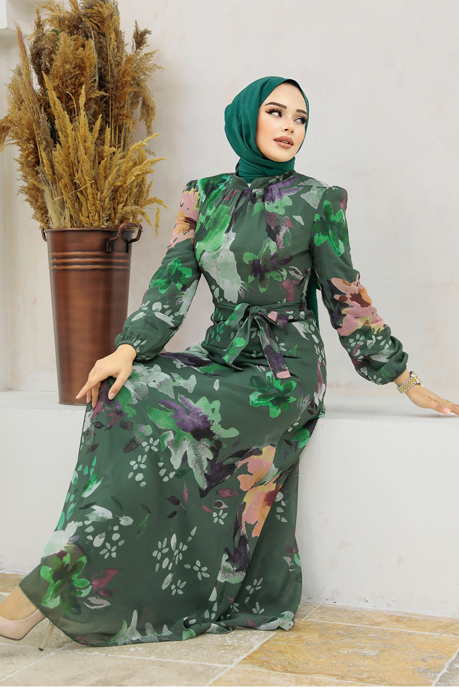 نيفا ستايل – فستان حجاب رمادي منقوش بالزهور 279312gr