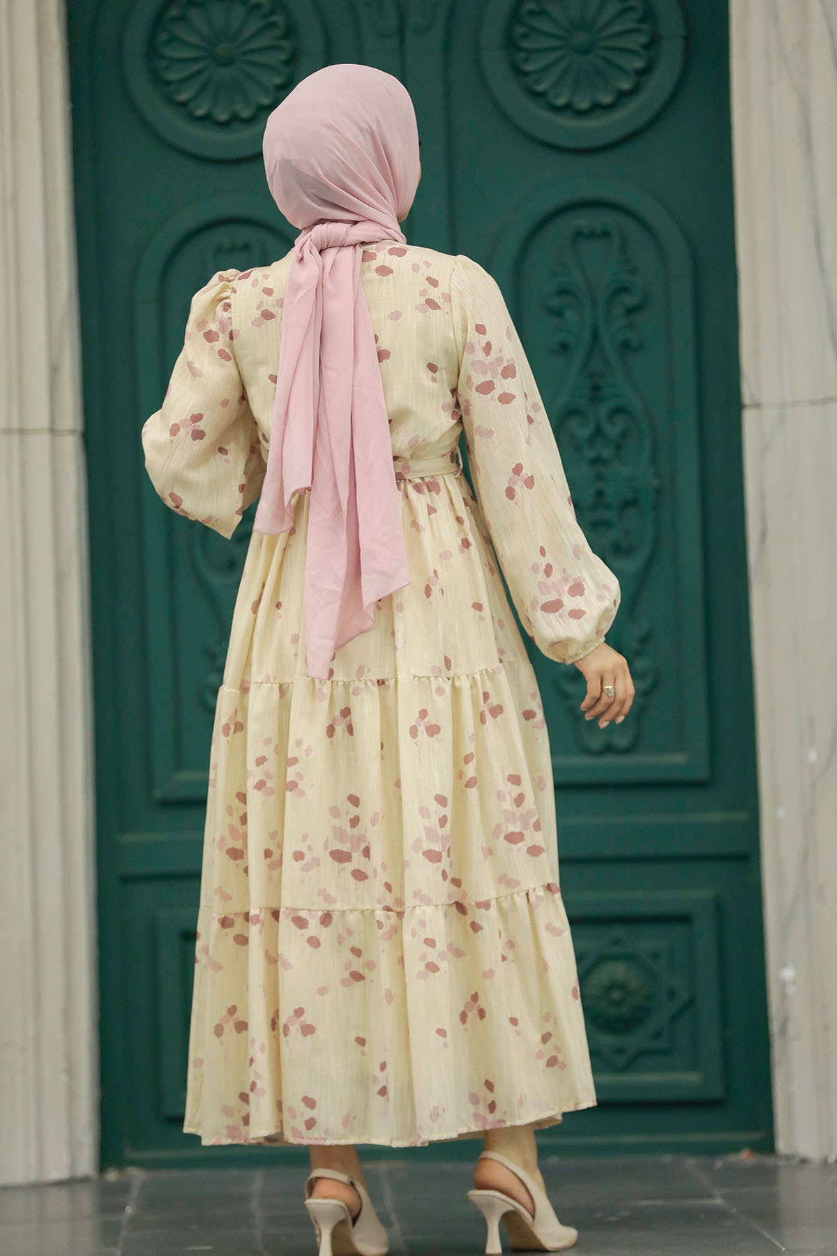 نيفا ستايل – فستان حجاب منقوش باللون الوردي المغبر 13130gk