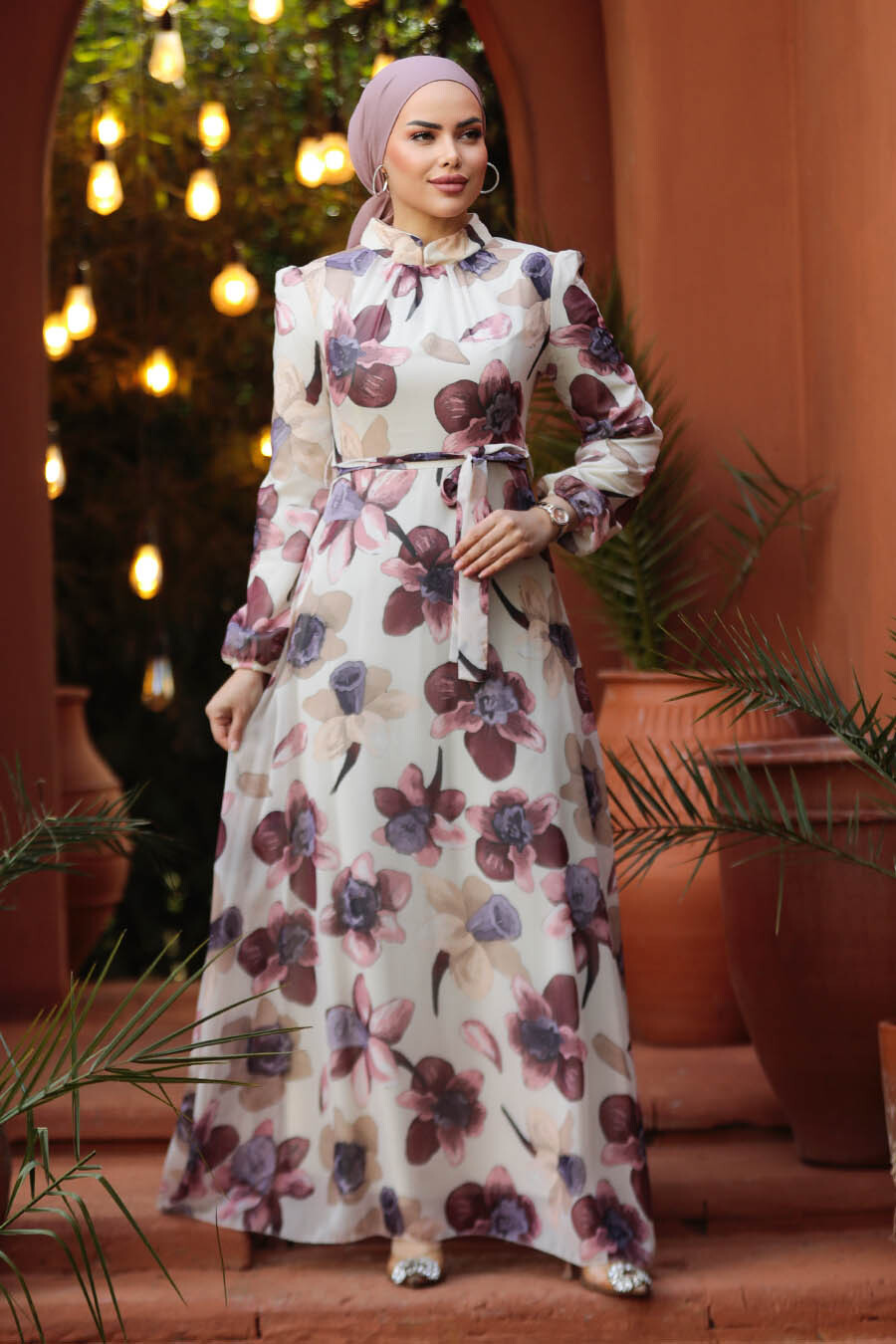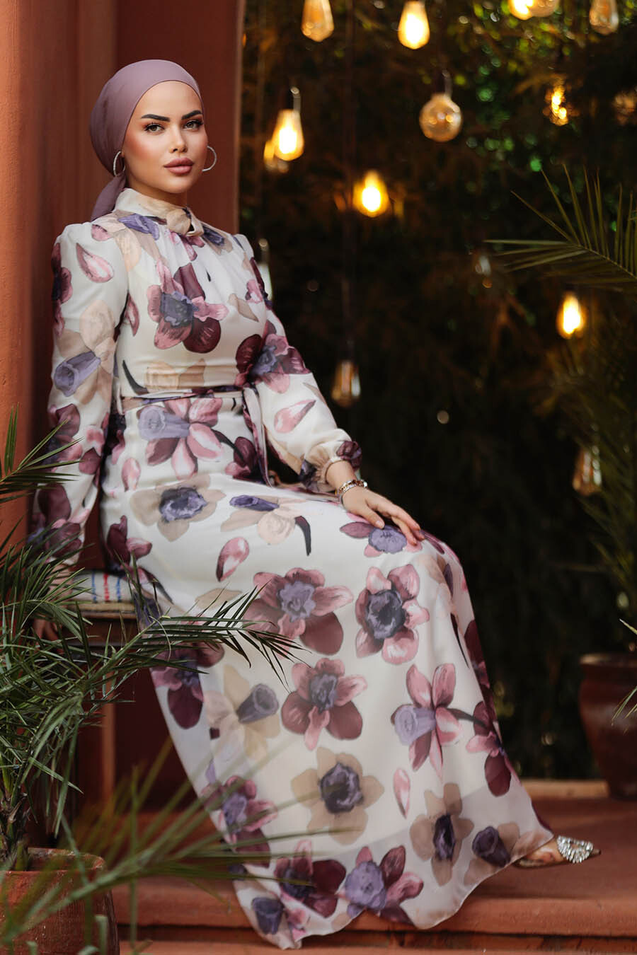 نيفا ستايل – فستان حجاب وردي مغبر مع نمط زهرة 279325gk
